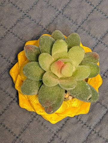 Bring a touch of warmth and elegance to your space with our Golden Lotus Faux Succulent Pot. Featuring a soft, realistic faux succulent nestled in a beautifully detailed lotus-inspired planter, this piece adds a radiant pop of color wherever it's placed.